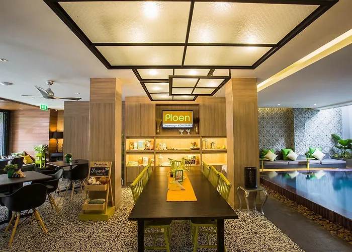 The hotel is centrally situated 1.5 km from Samui Bespoke Tailor. The Ploen is nestled within restaurants, a stadium, and bars, while the Samui Crocodile Farm is approximately 10 minutes away by car. The white sandy beach is 1.5 km away. The area also includes natural sites like the low-key Chaweng Noi Beach, which are a short way from this accommodation.